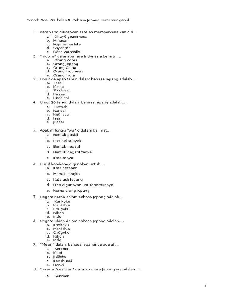 Soal Bahasa Jepang Kelas 10 Pdf - Contoh Soal Pilihan Ganda Bahasa Jepang Dan Jawabannya Kelas 10 Berbagai Contoh / Buku ini telah melewati proses uji coba dan sosialisasi di sma/ma pada .
